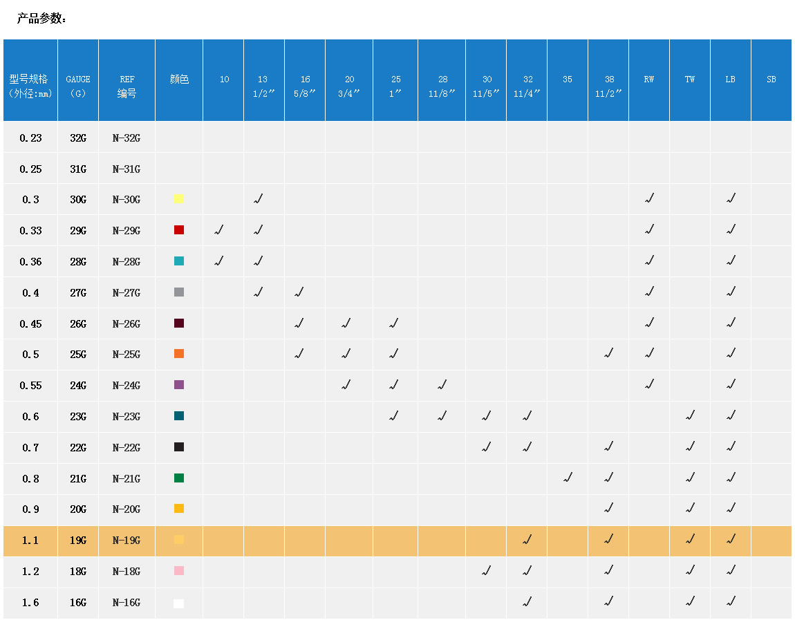 产品名称:注射针  REF-N-19G-1.1MM